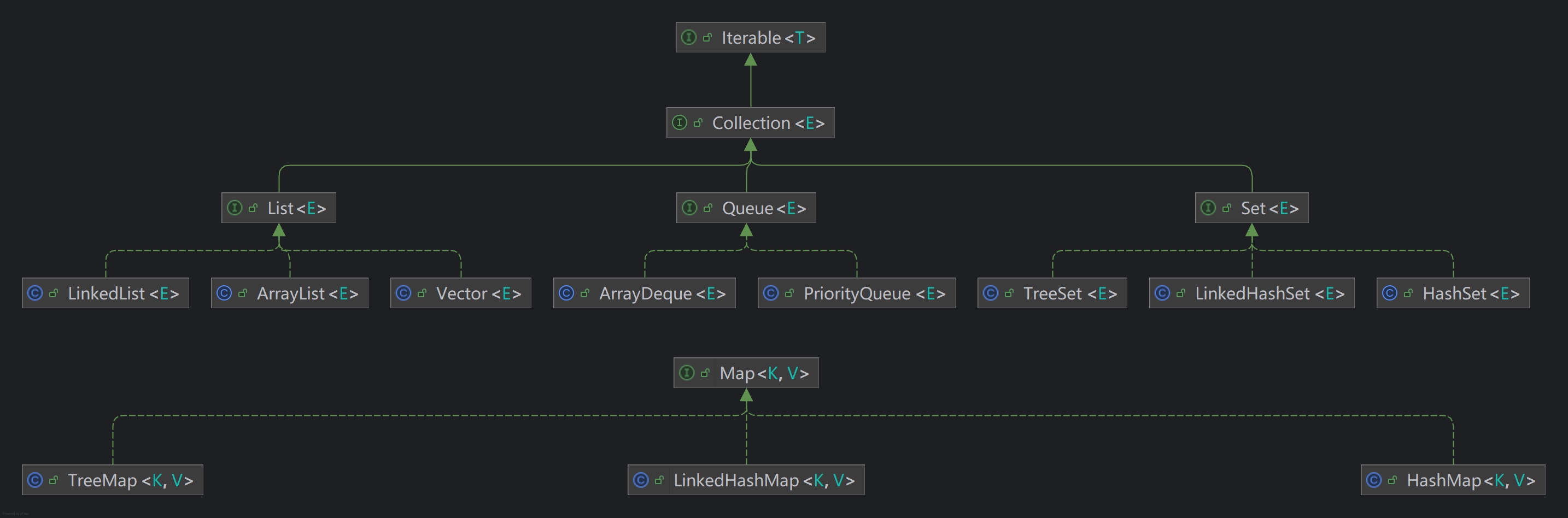 - Collection是“元素”的集合,Map是“键值对”的集合。