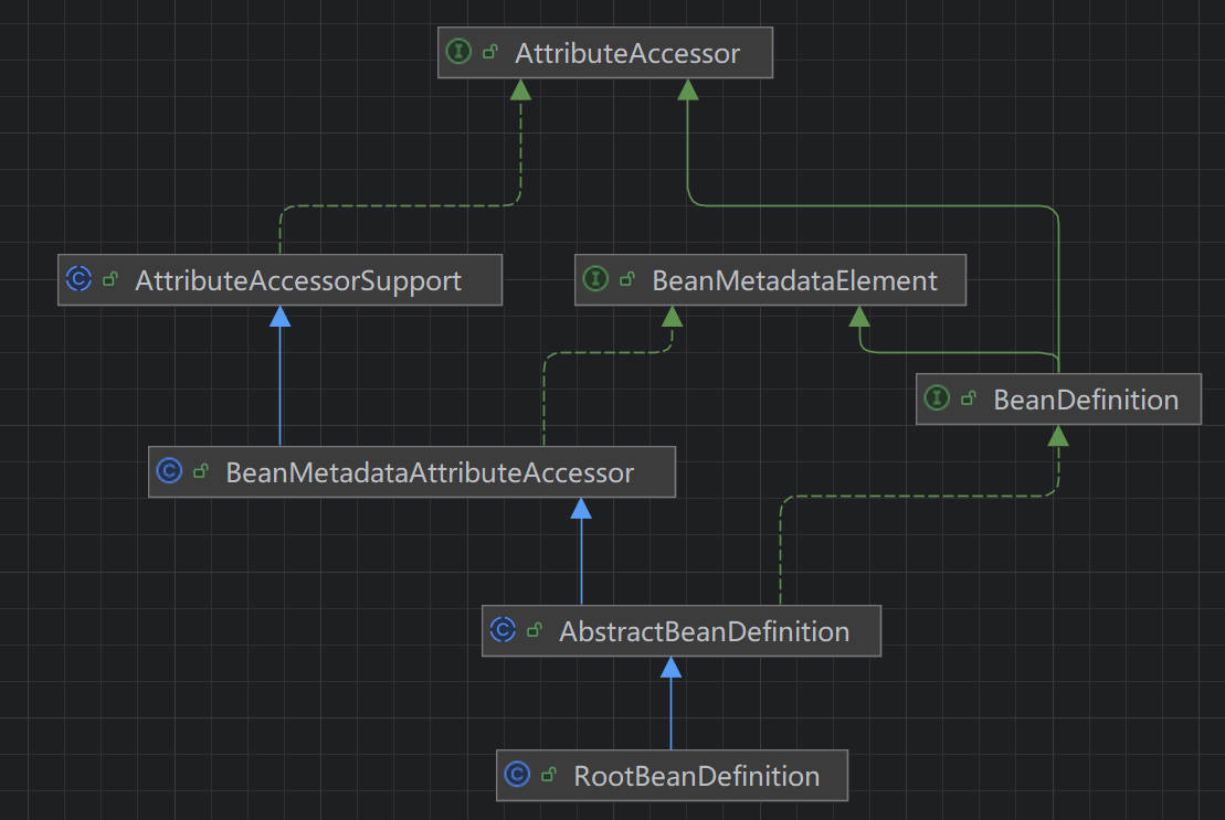 Spring 中 BeanDefinition 继承体系较为复杂,是容器管理 Bean 配置信息的核心数据结构。