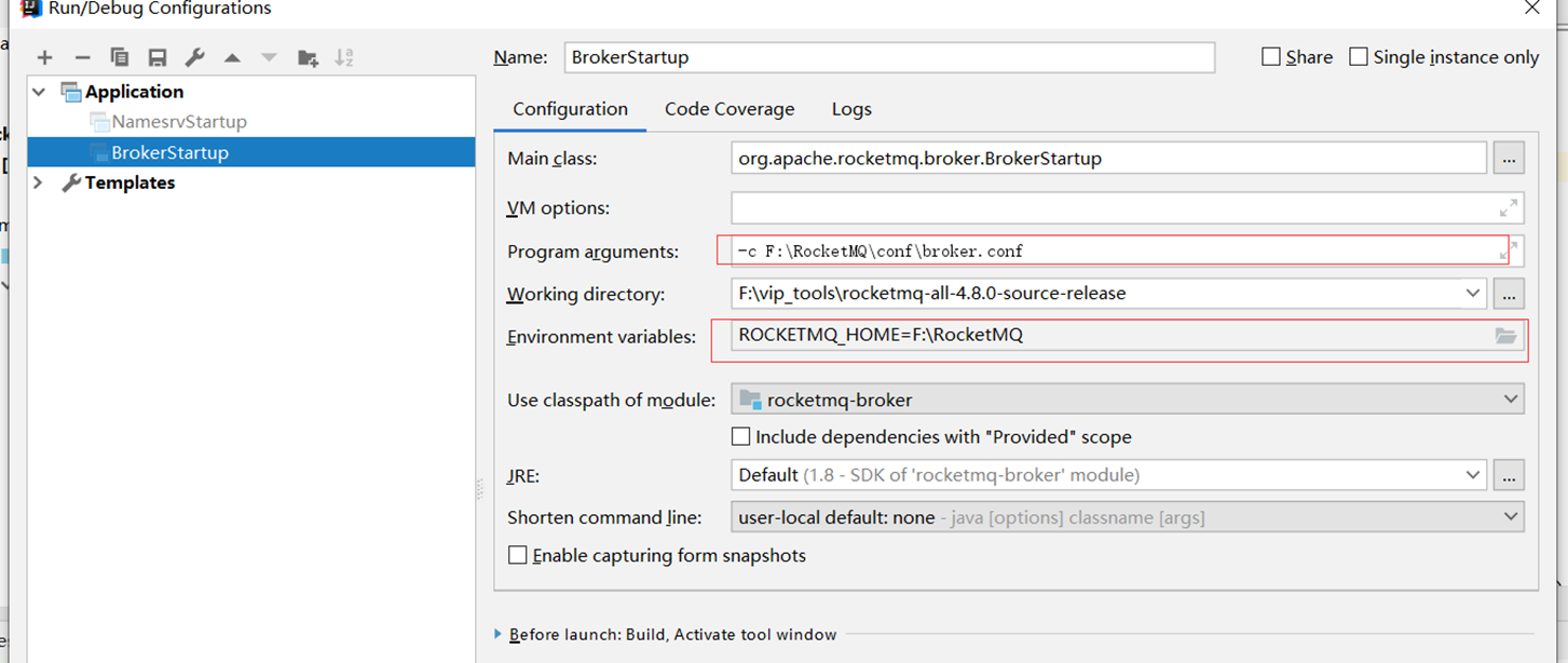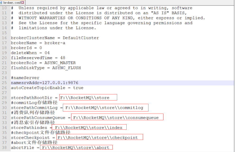 源码启动前需要修改配置文件broker.conf (修改RocketMQ的消息存储路径)